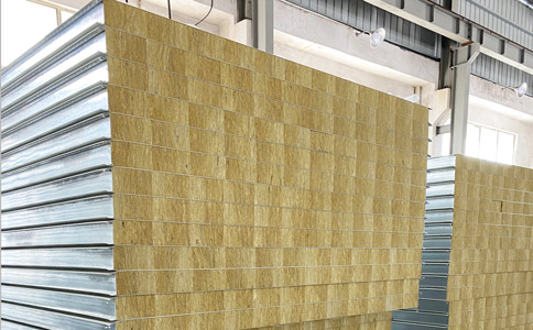 巖棉彩鋼夾芯板其芯材是以玄武巖及其它天然礦石等為主要原料,經高溫熔融成纖維,加入適量粘結劑,固化加工而制成的。是同類(夾芯板系列)中耐火性能最強的一種新型防火板材。